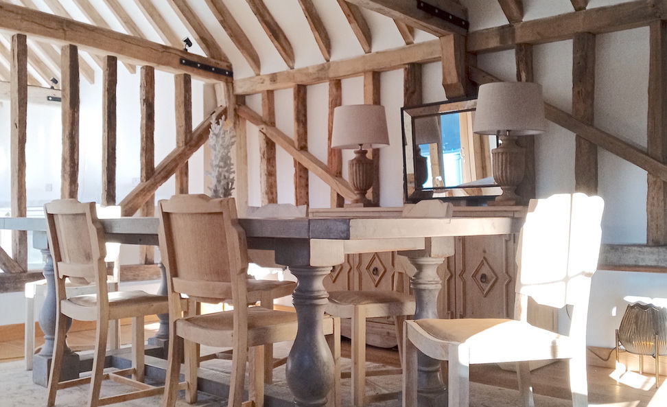 Alx Gunn Interiors was appointed to furnish a luxury barn conversion in East Sussex, blending 'shabby chic' with rustic antiquity. We combined antique pieces with modern furnishings, creating a harmonious mix of charm and elegance.